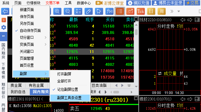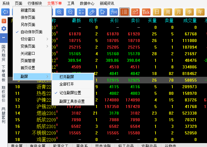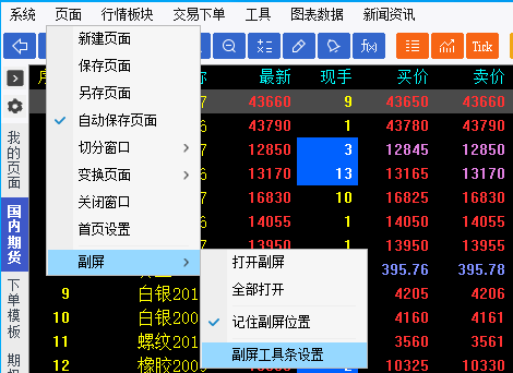 6. 副屏窗口上方的工具栏,如图6-3-5;可以通过菜单栏【页面】-【副屏】-【副屏工具条设置】来自定义,如图6-3-6。