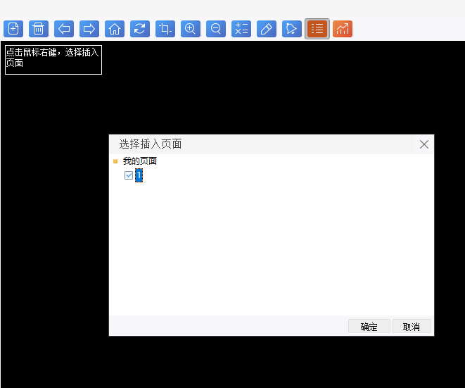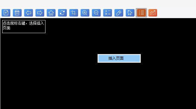 3. 插入画面:首次打开副屏后会出现空白的页面窗口,点击鼠标右键,可以选择插入页面,如图6-3-2;点击插入页面,即可从我的页面中选择需要副屏显示的页面,如图6-3-3;