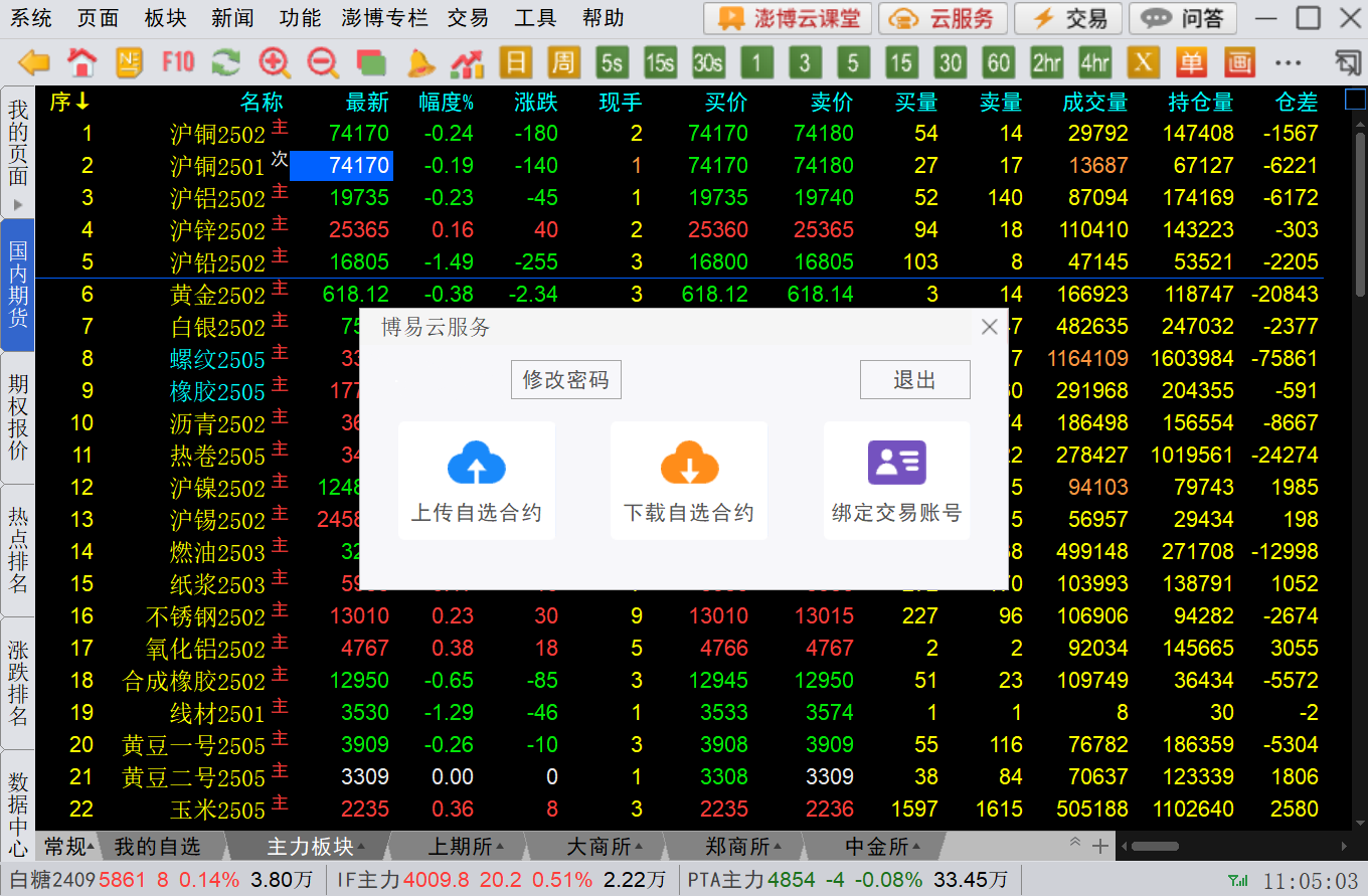 2. 使用云服务,可以上传/下载自选合约,点击相应按钮即可操作;