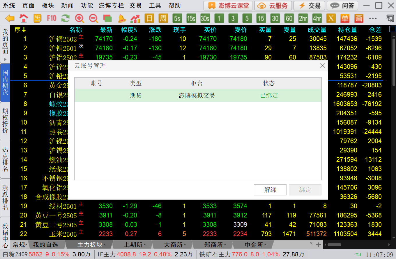 3. 如需使用云服务的交易功能,则需要先点击右上方的交易,登录成功后点击【云服务】-【绑定交易账号】,点击【绑定】进行账号绑定(如图3-2-2);