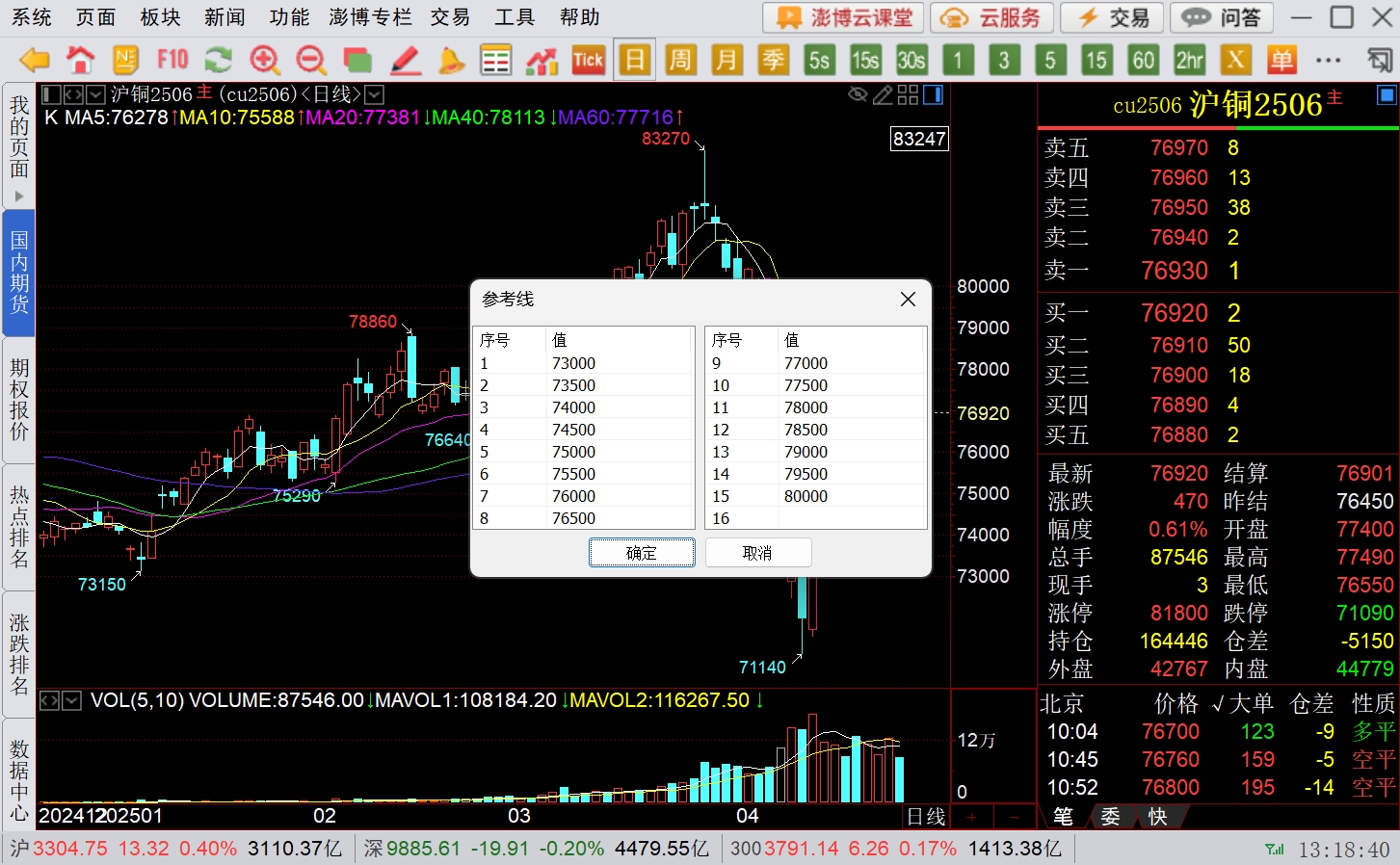7. 参考线:点击鼠标右键选择【坐标设置】(如图6-3-8),选择参考线后可设置K线图参考线(如图6-3-9)。需注意的是参考线设置之后仅对设置的合约有效,对其它合约无效;